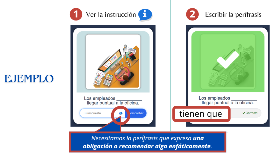 Ćwicz i utrwalaj swoją wiedzę w różnych kontekstach z LAS PERÍFRASIS DE INFINITIVO. Wykonaj ćwiczenia tyle razy, ile chcesz i sprawdź swoje odpowiedzi.