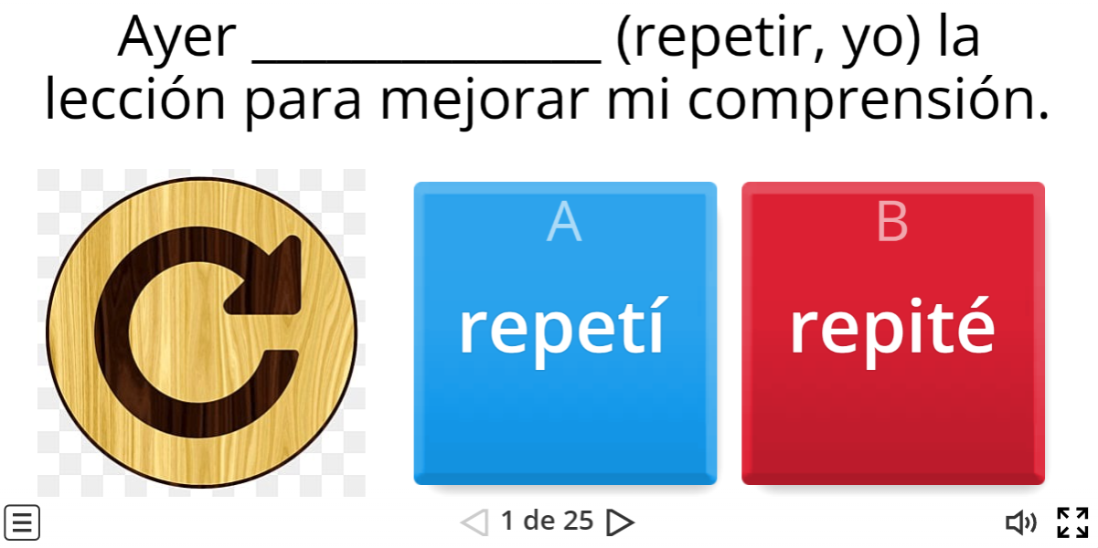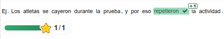 W każdym zdaniu znajdziesz dwa odmienione czasowniki. Kliknij na czasownik, który jest niepoprawnie odmieniany. /En cada frase encontrarás dos verbos conjugados. Haz click en el verbo que está mal conjugado.